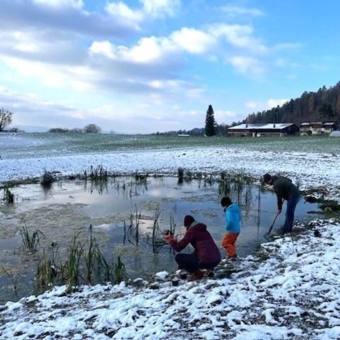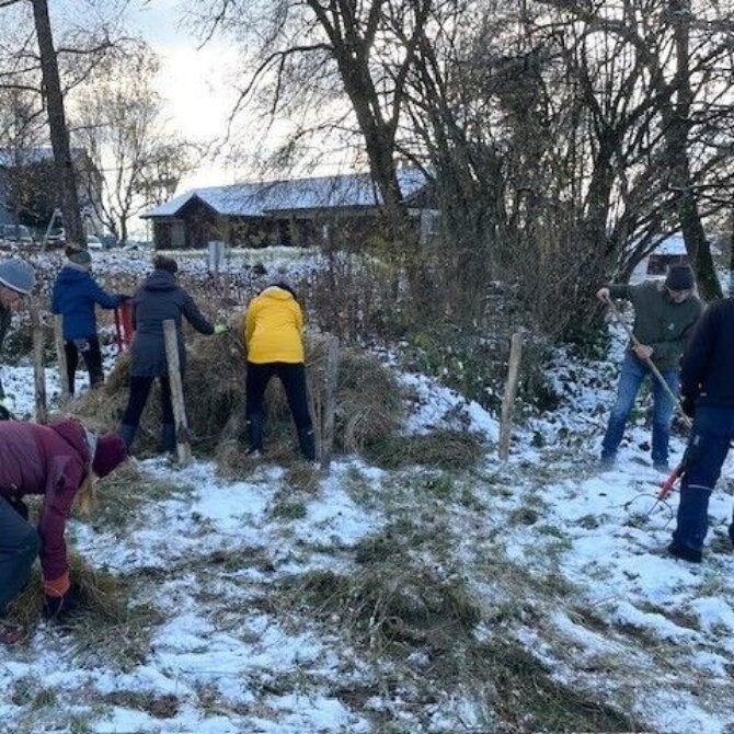 Beim Aktionstag “Ab in die Natur” ⛏️🌱 letzten Samstag hat eine Gruppe tatkräftiger Helferinnen und Helfer unermüdlich Kälte und Frost getrotzt und das Feuchtbiotop Boldern gepflegt.