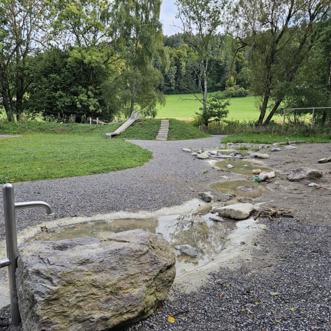 Der Spielplatz «Hermelin» entstand auf einer rund 1’000 Quadratmeter grossen Wiese gleich anschliessend ans Hotel Boldern. Er wurde naturnah gestaltet und unterstreicht den Biodiversitäts-Gedanken der Stiftung Boldern. Inklusion war für die Stiftung zentral: Kinder mit und ohne Beeinträchtigungen finden hier einen Ort zum Bauen, Balancieren, Staunen und Entdecken. Spielbach, Naschgarten, Hügellandschaft und viele kreative Elemente laden zum Erkunden ein. Ergänzt wird der Platz durch einen Pavillon, der künftig auch für Kindergeburtstage gemietet werden kann.