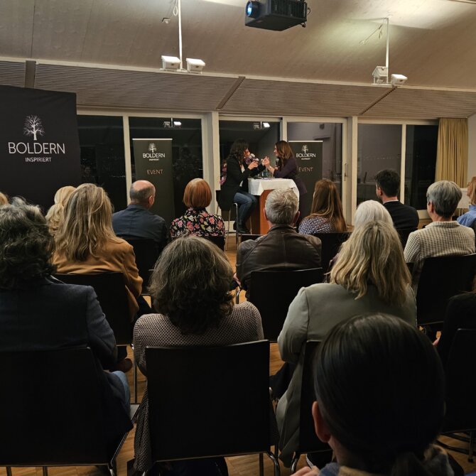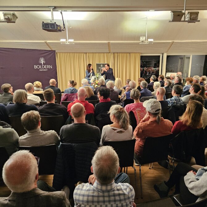 Kathrin Lehmann begeisterte mit einer Präsenz und Energie, die das Publikum bewegten und noch lange nachwirkten. Ein grosser Dank an die heimatverbundene Küsnachterin für ihre Zeit und die inspirierende Offenheit, an Susanne Giger, die mit viel Feingefühl, Präzision und Empathie durch das Gespräch führte, an das engagierte Publikum für die spannende Diskussion, an das Hotel Boldern für den exquisiten Apéro und an die Stiftung Boldern für die reibungslose Organisation des Anlasses.